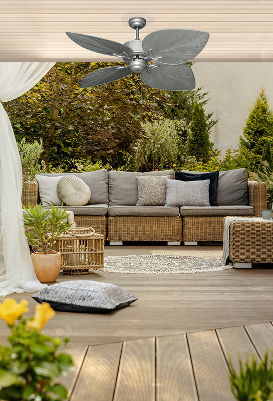 The 72 inch sweep Liberator is a large modern ceiling fan suitable for indoor and outdoor areas alike. Its 9 clean contoured resin blades and sleek motor body give it a bold contemporary style without detracting from the rest of the room. The powerful, energy efficient DC motor moves an incredible volume of air while using very little electricity. It can be fitted with an optional 18 watt LED light and is WiFi compatible, pairing with the SmartLife app for maximum user control.